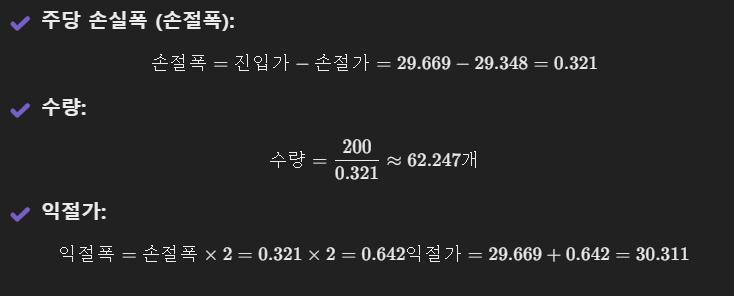 | 🔢 수량 | 62.247개 | 손실이 $200 넘지 않도록 자동계산 |